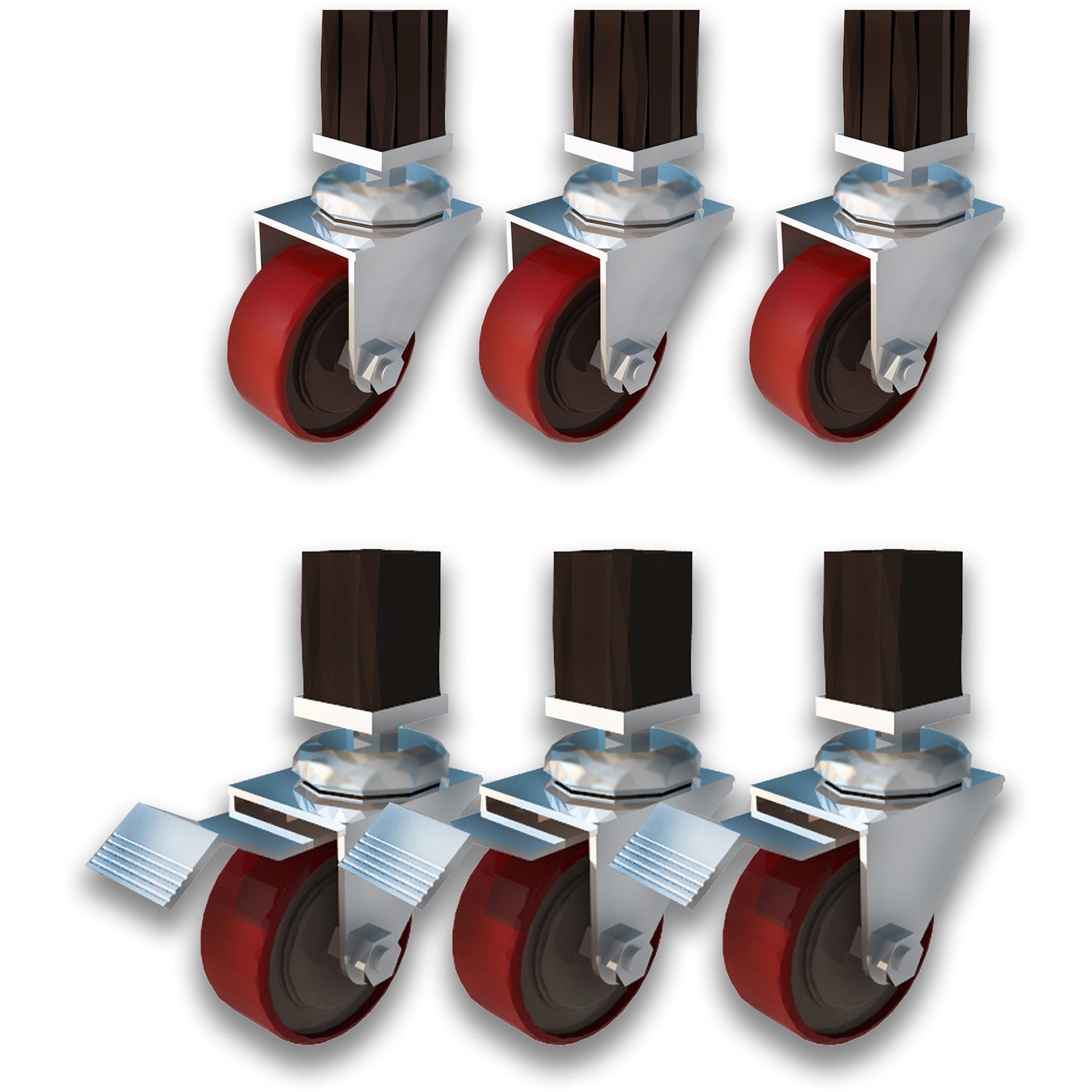 - Castor Set: 3 With Brakes + 3 Without Brakes