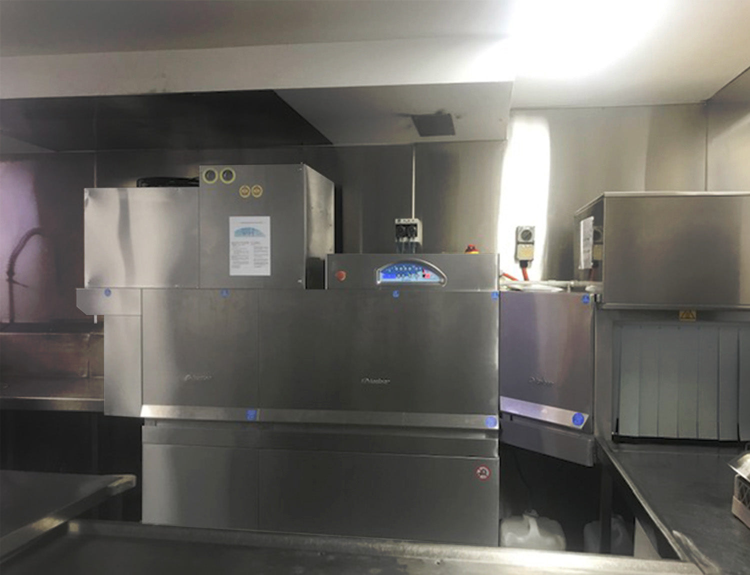 - The extracted air is so cooled and dehumidified that it can be fed back into the working room thus improving considerably the ambient condition of the dishwashing area.